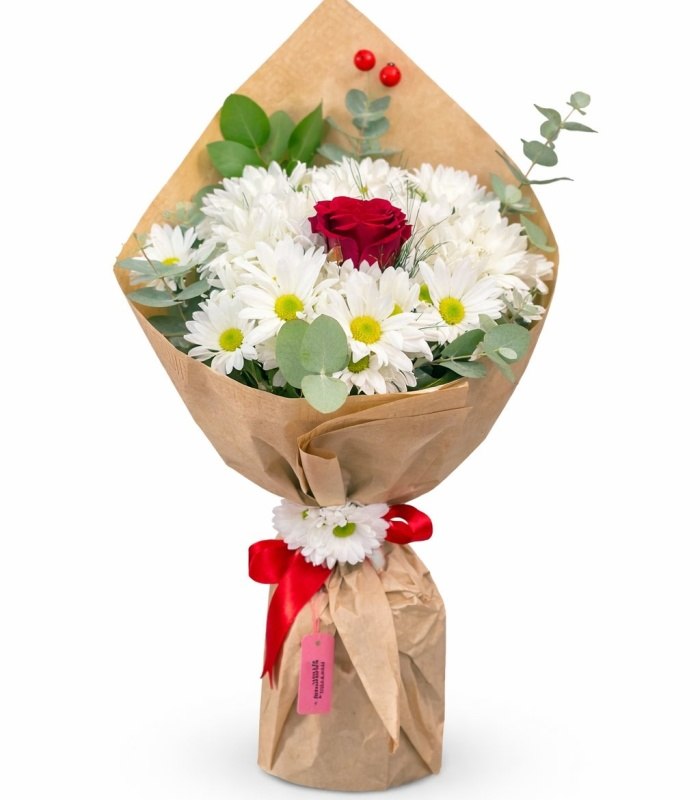 Beyaz Papatya Tek Gül Buketi